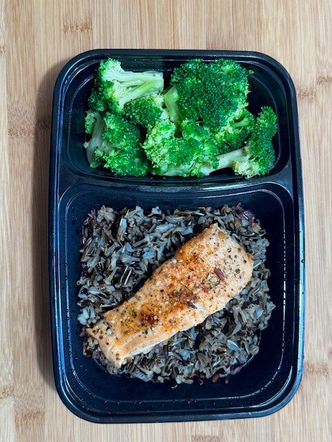 Oven Roasted Salmon with Wild Rice Blend and Broccoli Florets